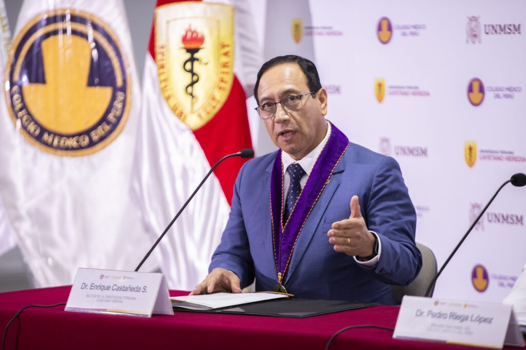 “El debate abordará temas clave como el primer nivel de atención, el acceso a medicamentos e insumos, los sistemas de información en salud —incluido el uso de la historia clínica electrónica y la implementación de la interoperabilidad—, la gobernanza sanitaria y la respuesta ante emergencias, los recursos humanos en salud y los determinantes sociales con acciones multisectoriales”, señaló el Dr. Pedro Riega, decano nacional del CMP. Lo acompañaron el rector de nuestra universidad, el Dr. Enrique Castañeda, y la rectora de la UNMSM, la Dra. Jeri Ramón.