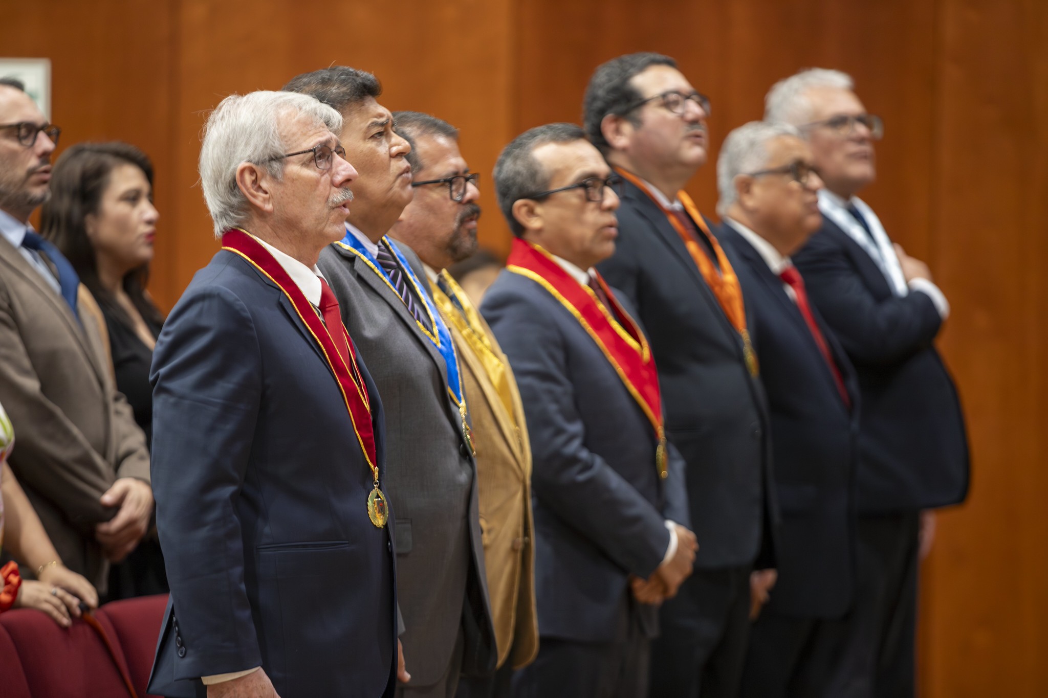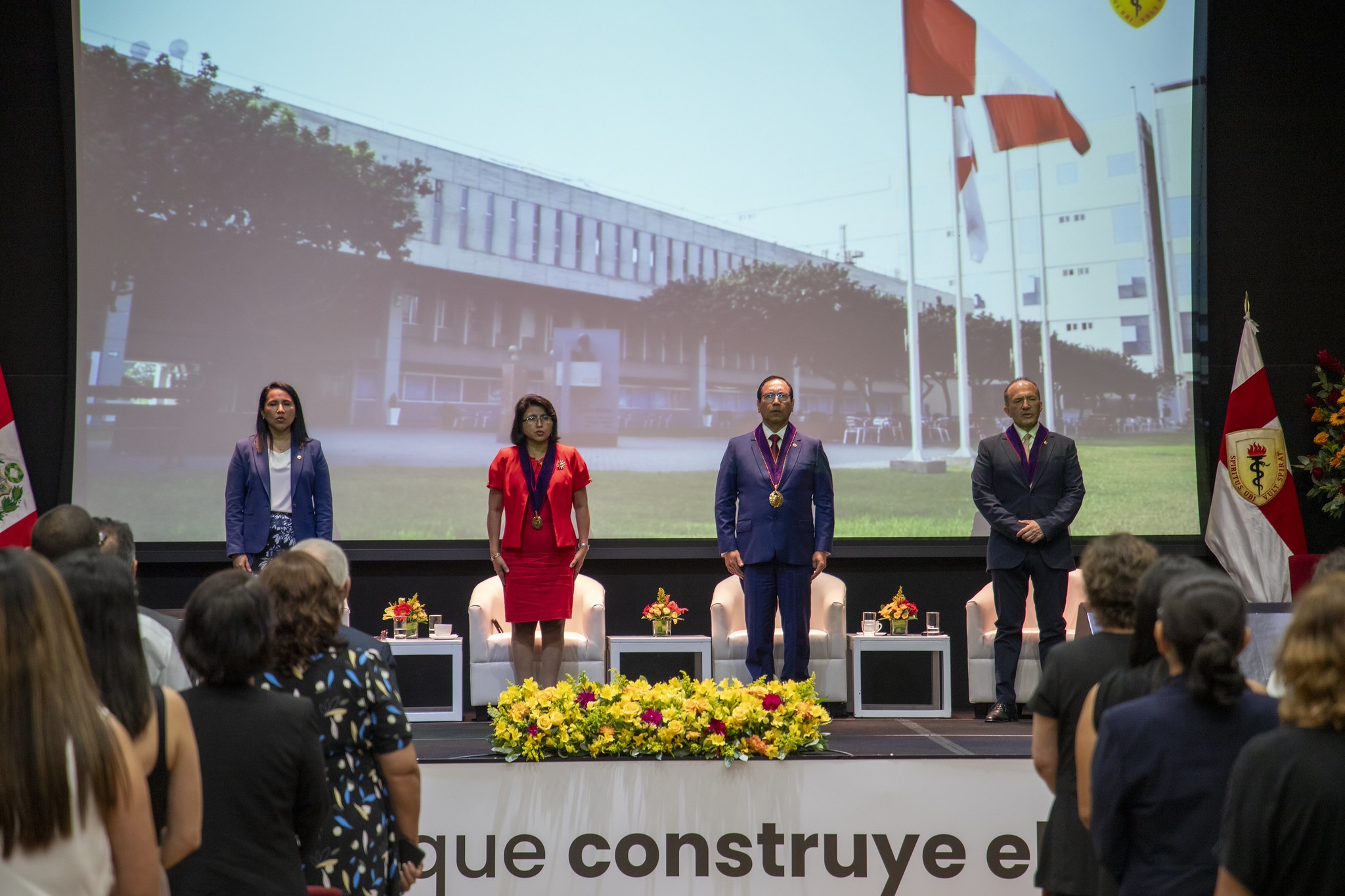La ceremonia fue presidida por nuestro rector, el Dr. Enrique Castañeda, quien estuvo acompañado por la vicerrectora académica, la Dra. Yesenia Musayón; el vicerrector de investigación, el Dr. Carlos Cáceres, y la directora de Personal Docente, la Mag. Allison Chávez. También asistieron decanos, vicedecanos, directores de carrera y personal administrativo, en un encuentro que reafirmó el compromiso institucional con la educación de alto nivel.