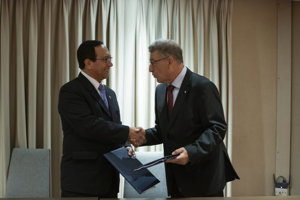 Por parte de nuestra universidad, el documento fue suscrito por el rector, Dr. Enrique Castañeda, mientras que el Instituto Universitário de Ciências da Saúde – CESPU estuvo representado por su vicerrector, el Dr. Joaquín Ferreira Moreira.