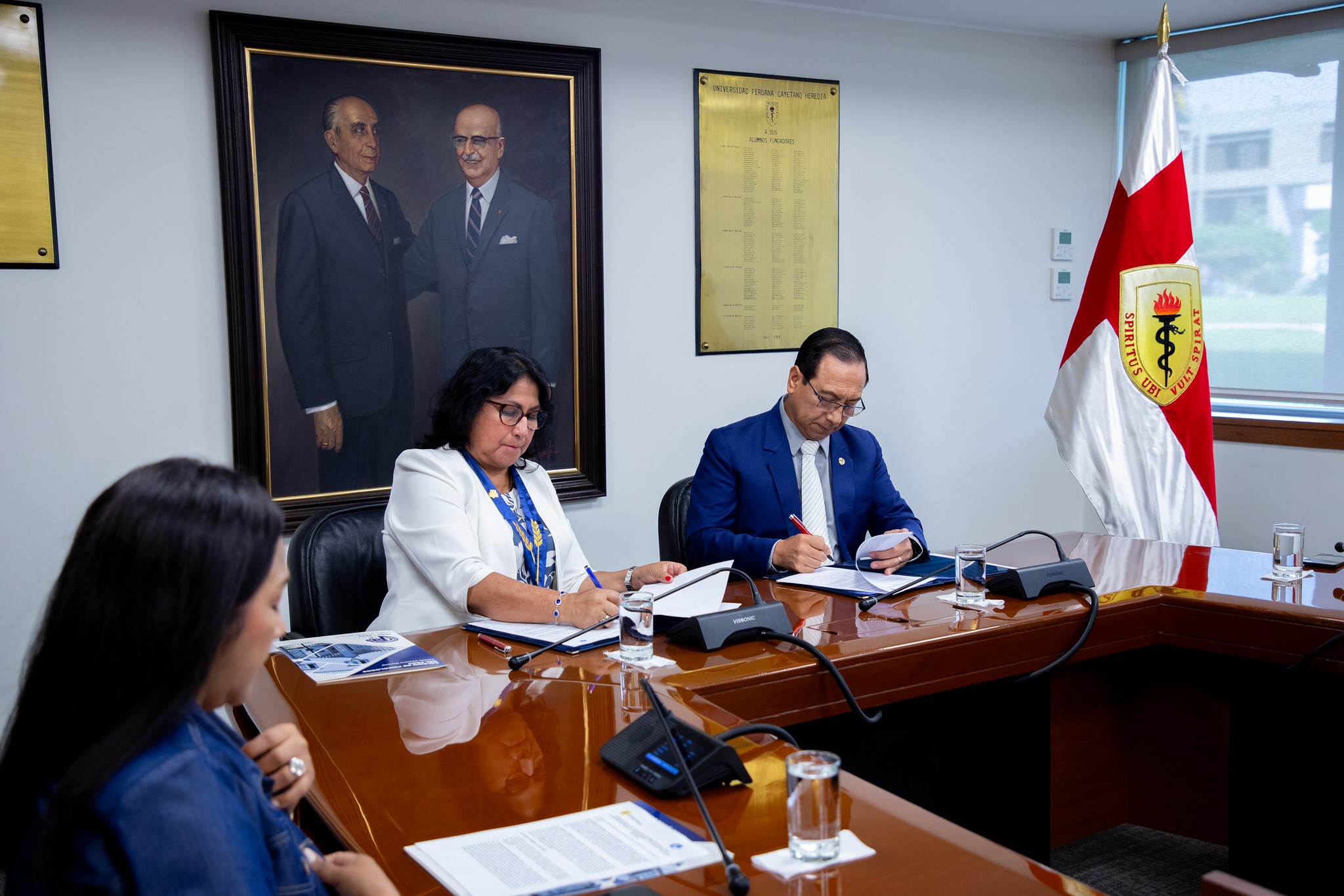En representación del Colegio de Psicólogos del Perú, firmó la decana, la Dra. Teresa Machado Raza. La acompañó la Dra. Blanca Nieves Galarreta, miembro de dicha institución, que agrupa a los profesionales de la psicología a nivel nacional.