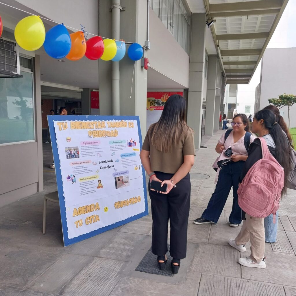 Durante la jornada, se instalaron seis stands informativos, cada uno orientado a temas clave. Los estudiantes pudieron conocer la labor del servicio en la promoción del bienestar emocional, identificar a sus consejeros asignados para el presente año académico y recibir orientación sobre el manejo del estrés, los hábitos saludables y el uso del aplicativo institucional para la reserva de citas. Asimismo, se brindó información sobre los ambientes disponibles y se explicaron las diferencias entre el Servicio de Consejería Psicológica y la Tutoría Académica, lo que facilitó una mejor comprensión de sus funciones y alcances.